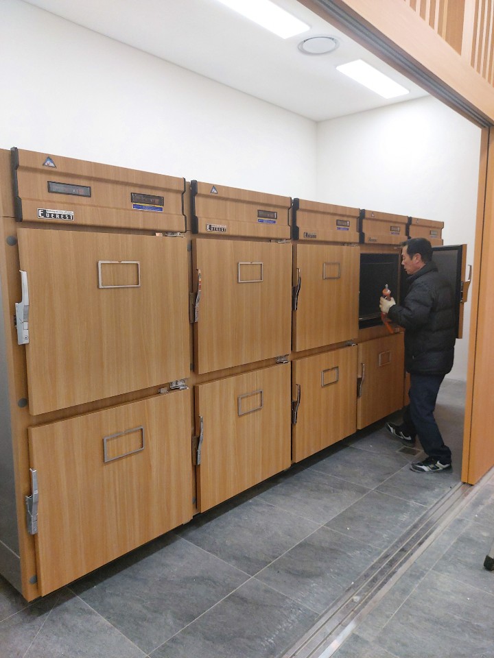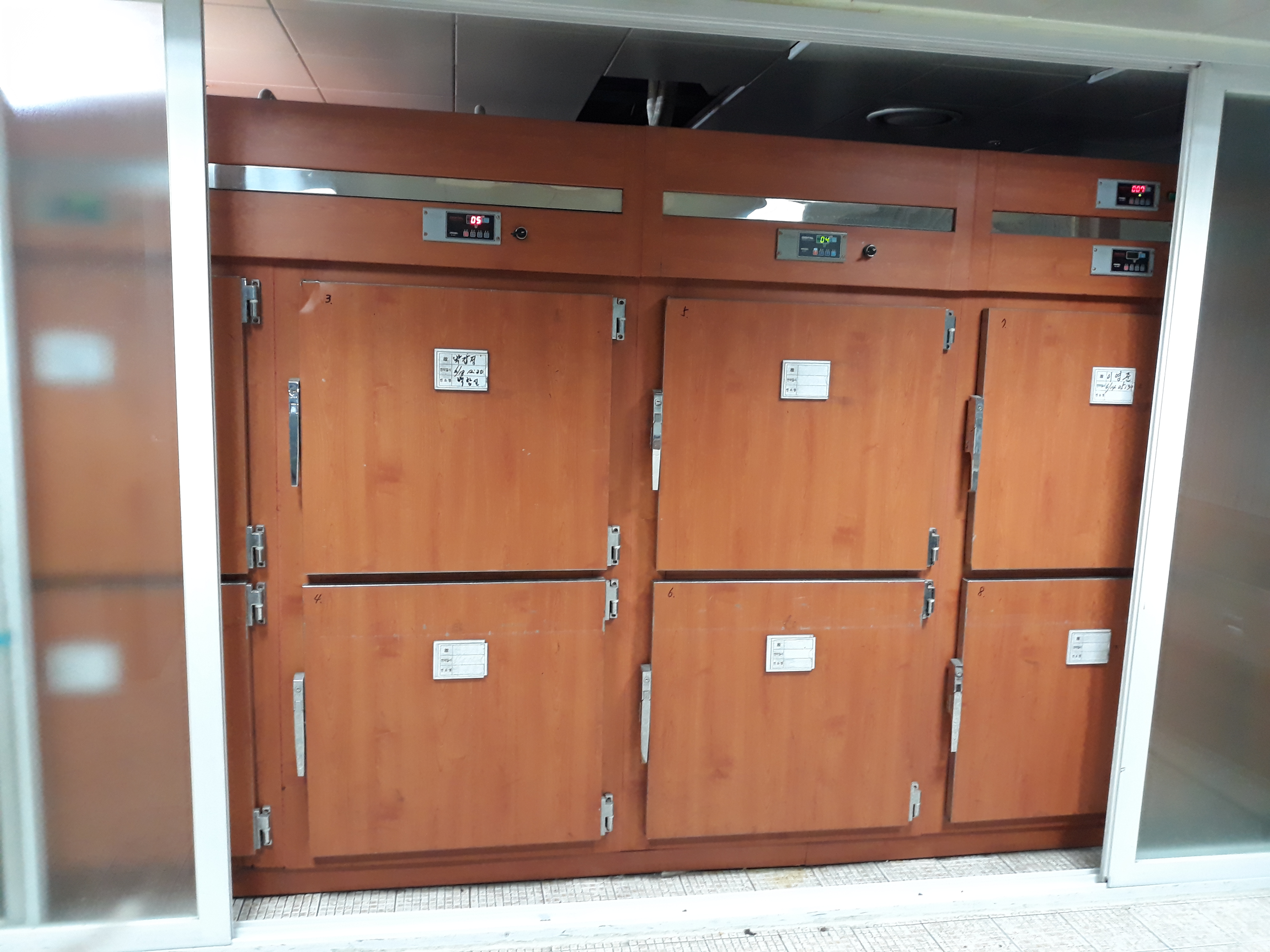 시신을 화장장에서 화장 전 대기 시간에 시신안치냉장고에 모셔 놓습니다. 시신안치보관냉장고