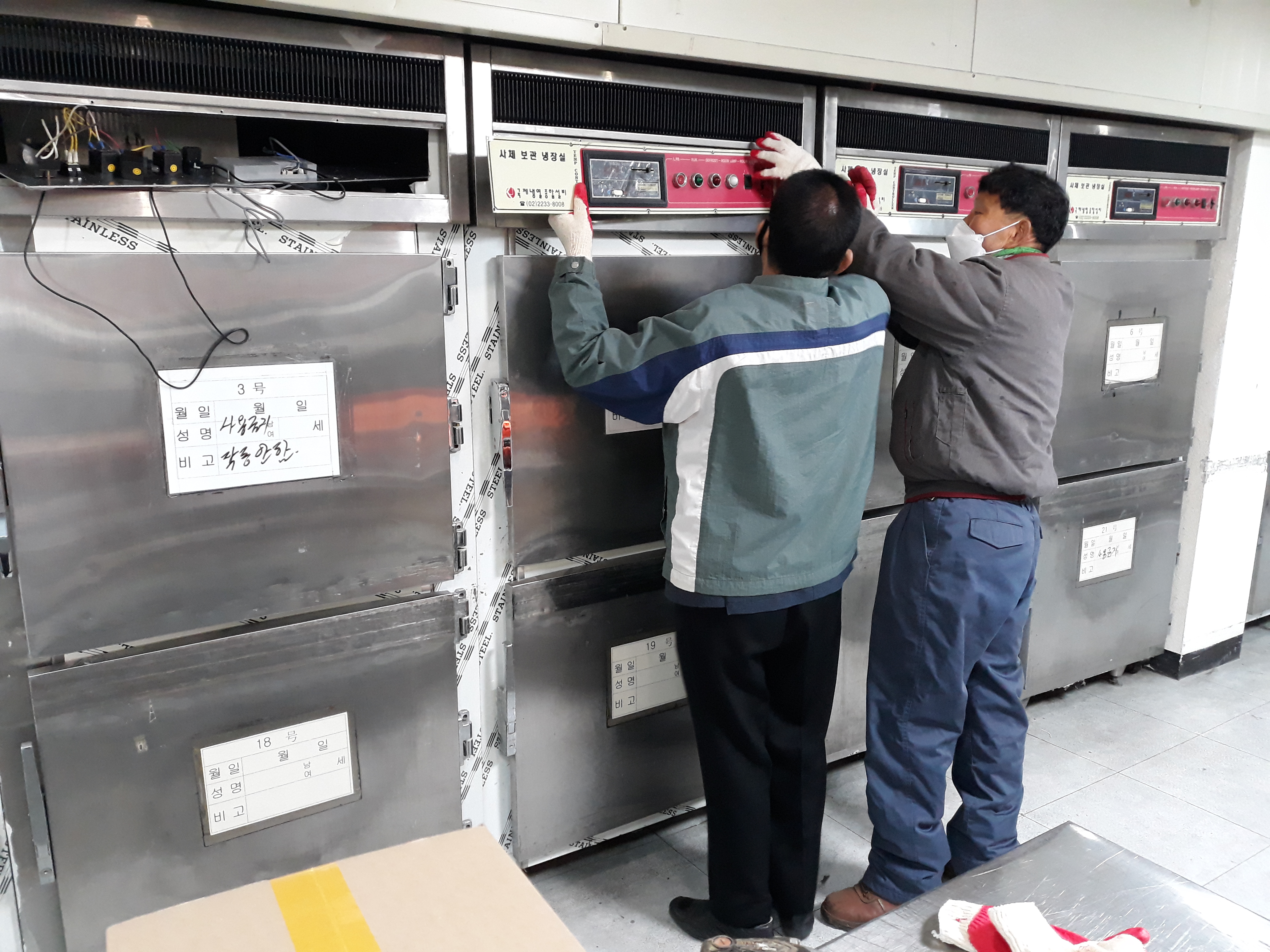 사체냉장고2구1쎄트 수리 유지보수 작업 일반적인 사체냉장고 유지보수