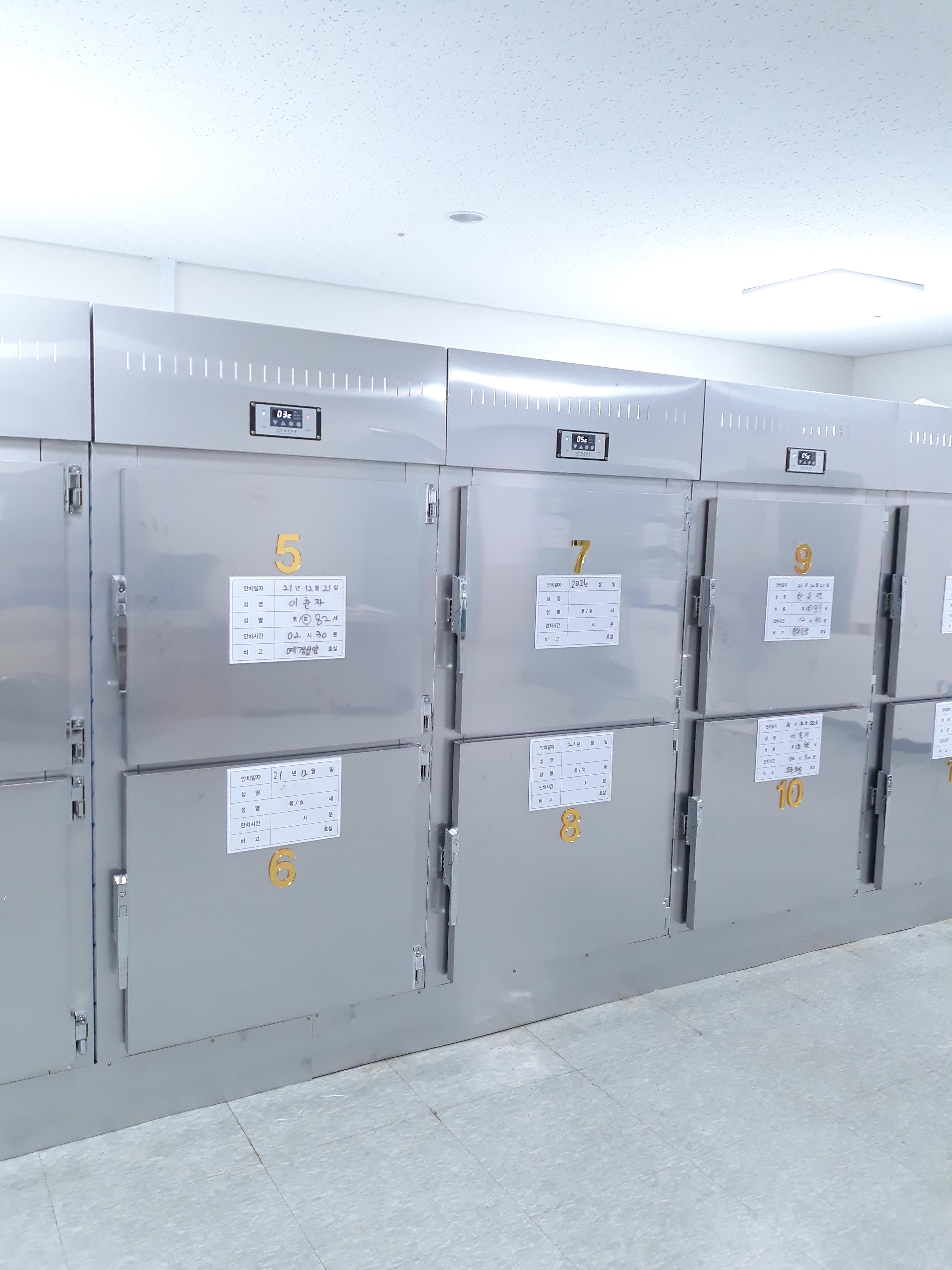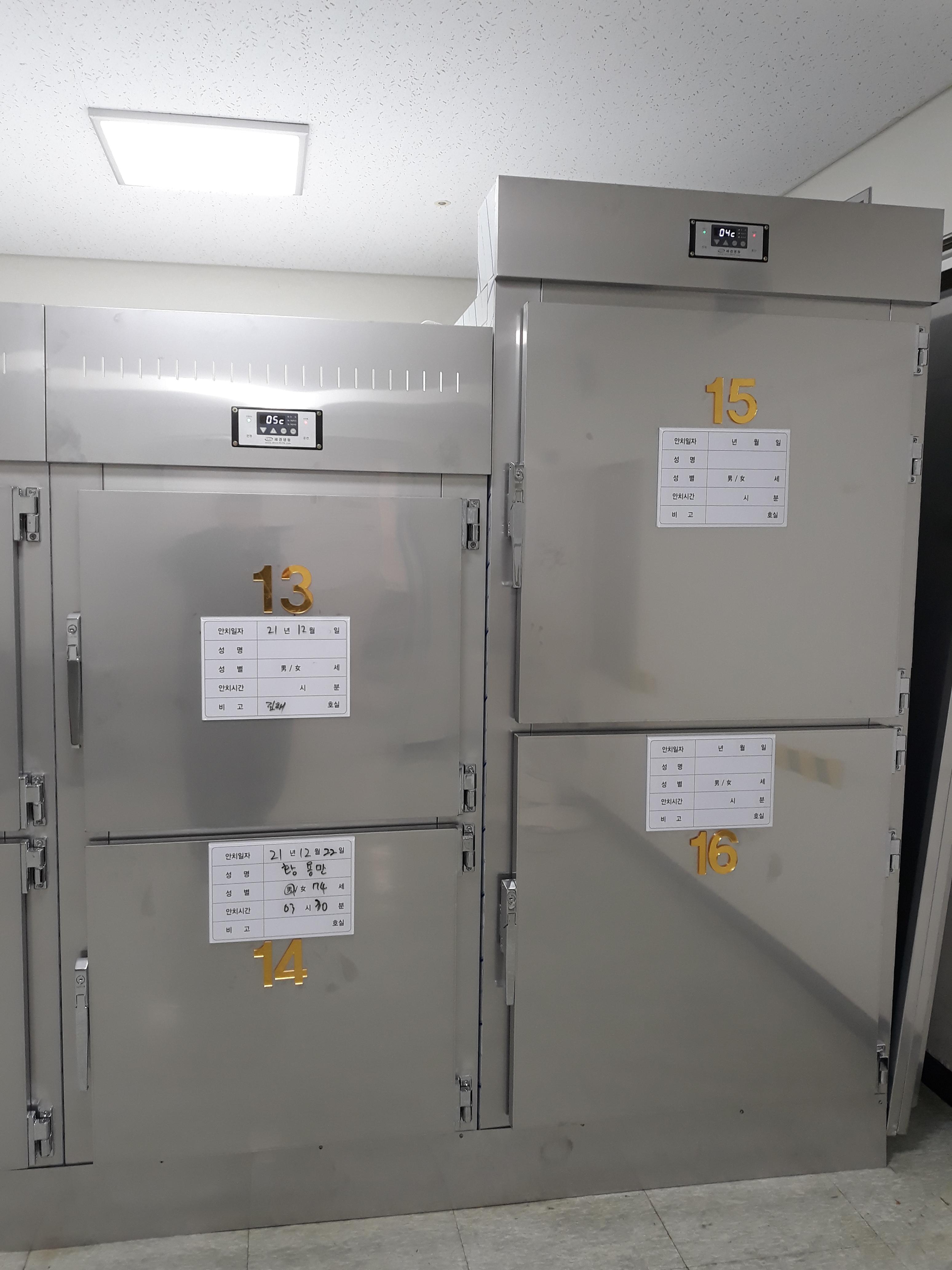 사체보관냉장고 일반형이 2구 1쎄트 2조 설치하였 있습니다.