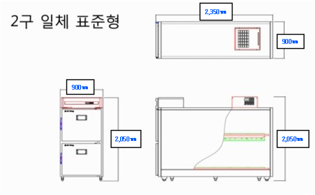 안치 냉장고 사양 (규격 및 재질) 2구형(2단)/1조 독립형 형태(감영병 일체형) - 2구 표준형