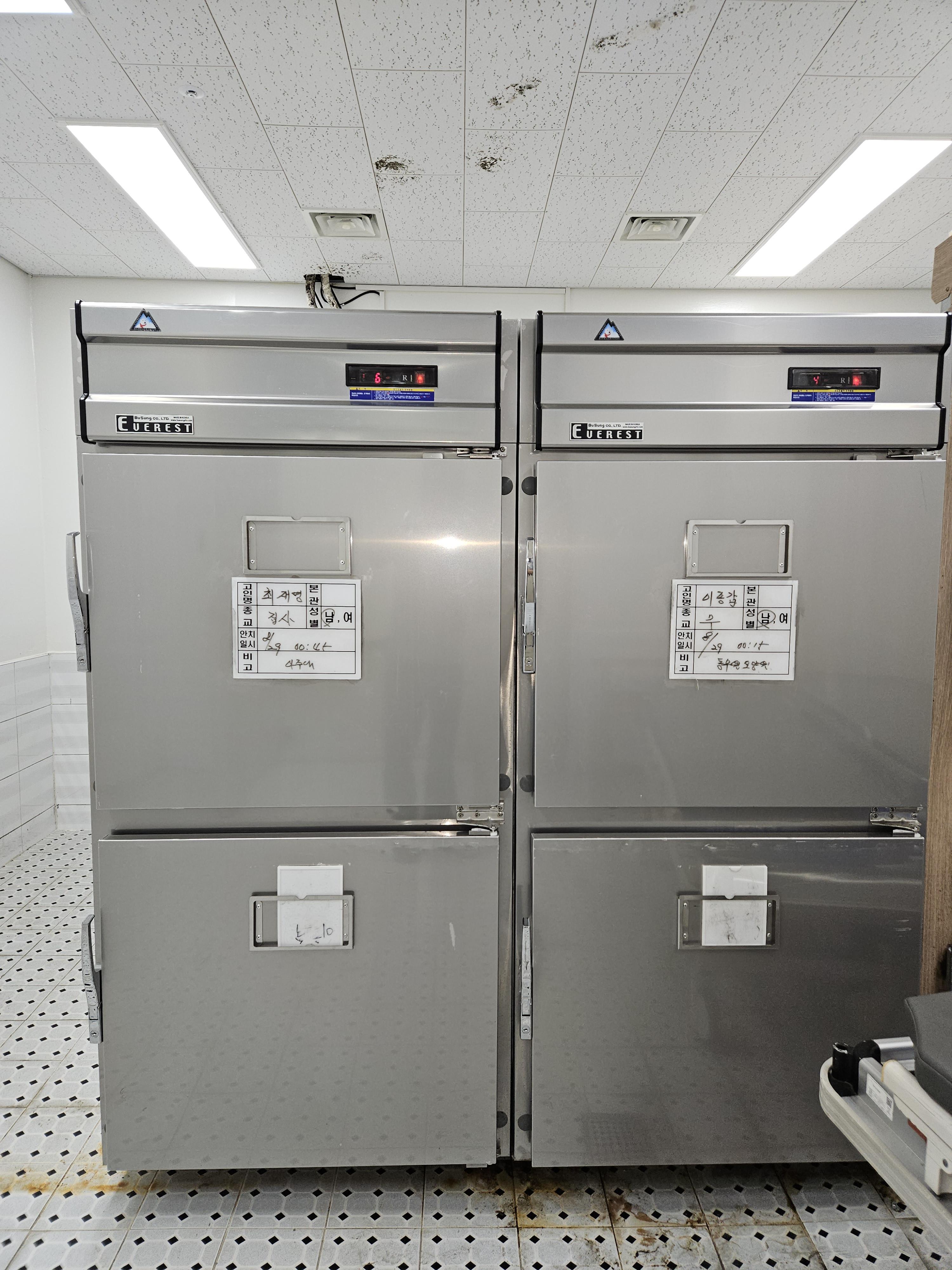 안치실 냉장고는 표준형과 감염병용이 있으며 감염병용은 상 하 독립냉각시스템으로 제작하며 간냉식(냉기강제순환방식) 냉각 방식으로 제작되여습니다.