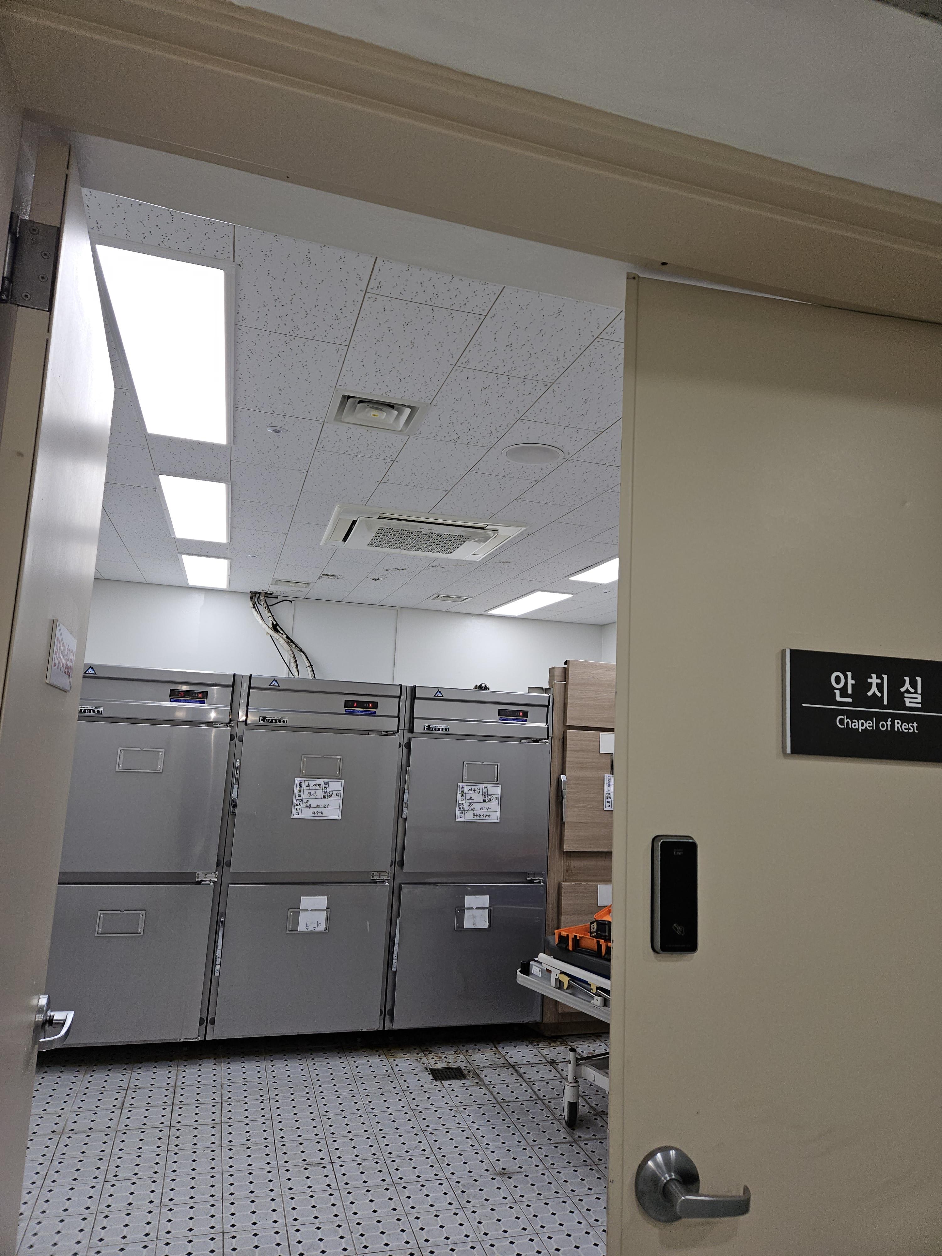 안치실 냉장고는 종합병원, 병원, 한방병원, 요양병원은 해당 병원에서 사망하는 사람 등의 장사 관련 편의를 위하여 장례식장 안치실에 설치한다.