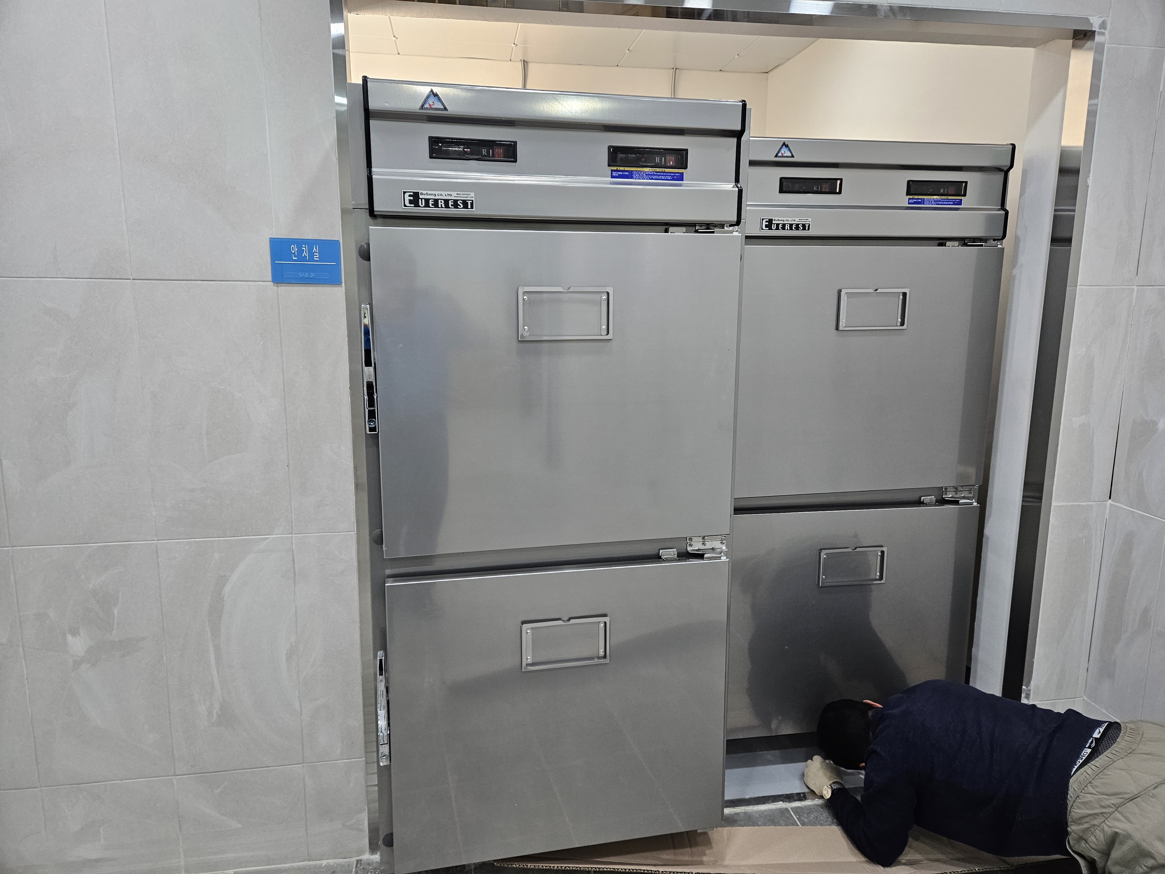 1) 영안실 냉동고 냉동기 케이스 안착.