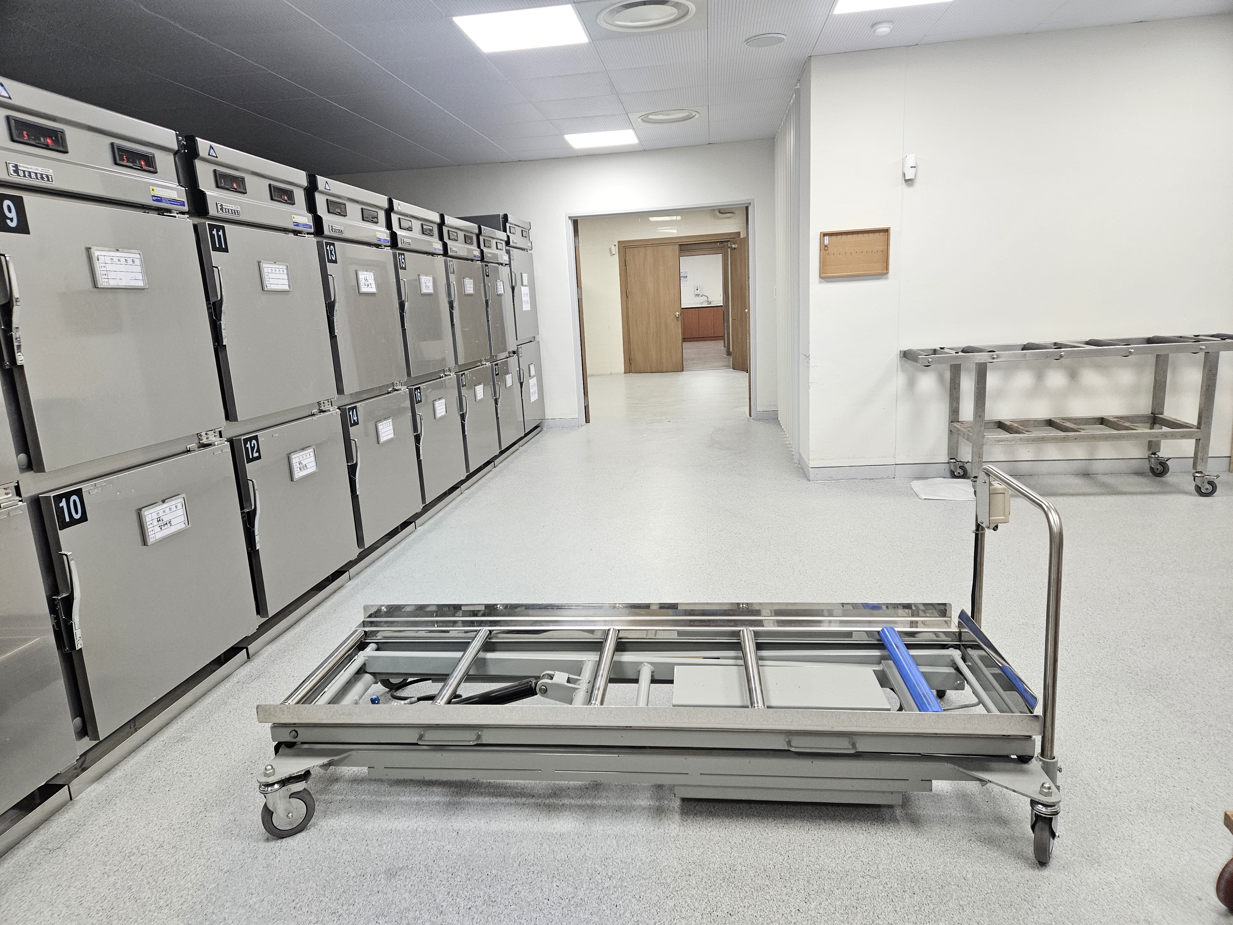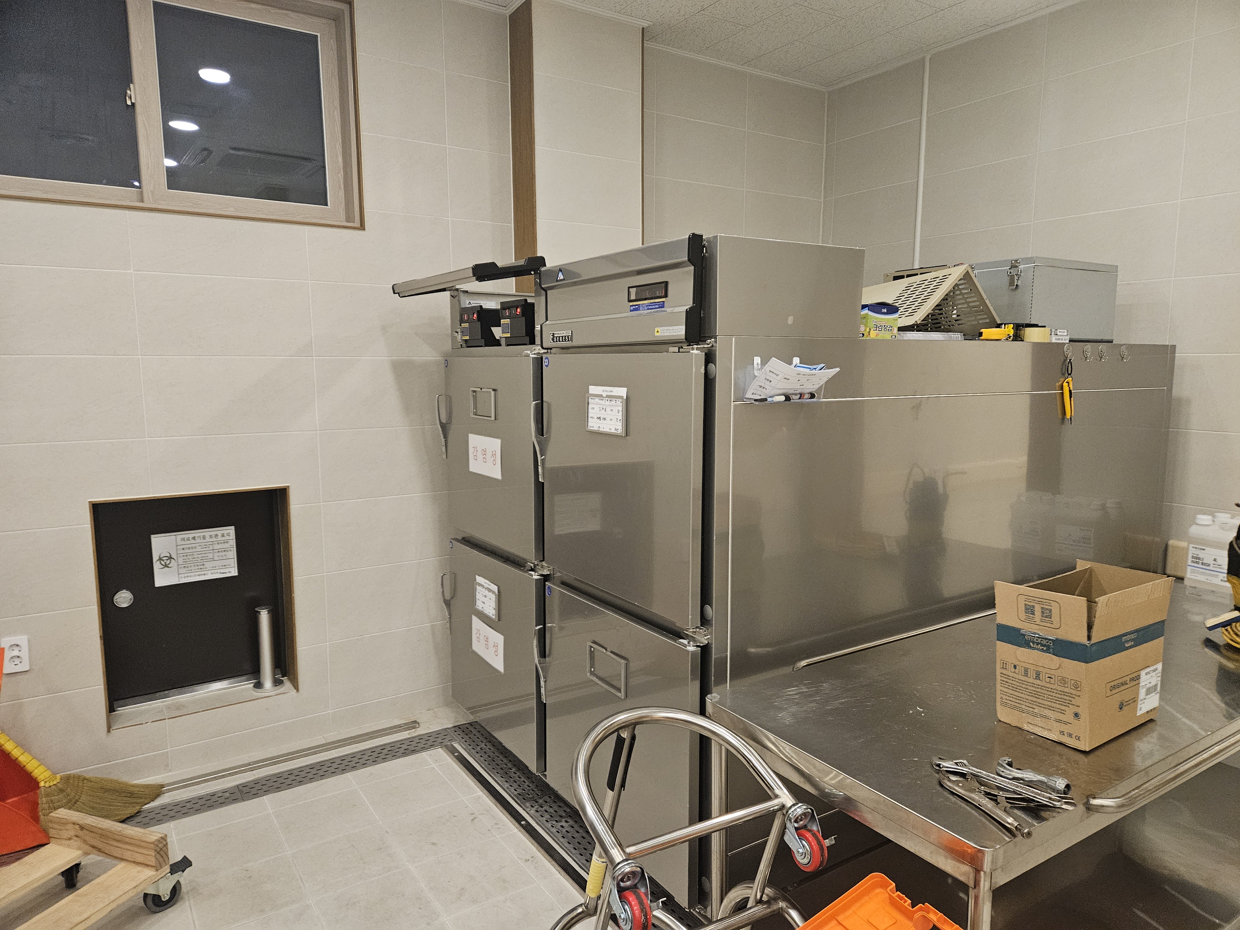 형명 : 사체냉장고 (WBCAI-020) 형태 2구용 사용온도범위 +2도 ~ +4도 재질 스테인레스 스틸 304 사용냉매 R-404a, R-134a 순환방식 공랭식 법적능력(RT) 0.3 냉동유주입량(Liter) 1 전열면적 1/3Hp Fan Motor 6X4P 풍량(CMM) 15 제어방식 Heater Type 제어장치 과전류 계전기, 과전류 개폐기외 소비전력 0.5KW 가로 2400mm 세로 880mm 높이 1900mm 정격전원 AC 220V, 60Hz